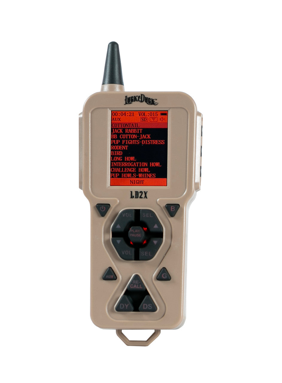 The Riot 2.0 is designed for performance and portability, while maintaining superior sound quality. An upgraded body housing adds even more durability to the Lucky Duck Predator caller lineup. Transporting your caller has never been easier with the remote and decoy conveniently stored on the unit. The Riot includes 150 preloaded sounds (capacity of 2,000), a 3-speed motorized decoy, and remote control with a range of 300+ yards. All sounds are live animal recordings compiled by The Verminator, Rick Paillet. The Riot runs on 10 AA batteries, and the remote runs on 3 AA batteries (not included).